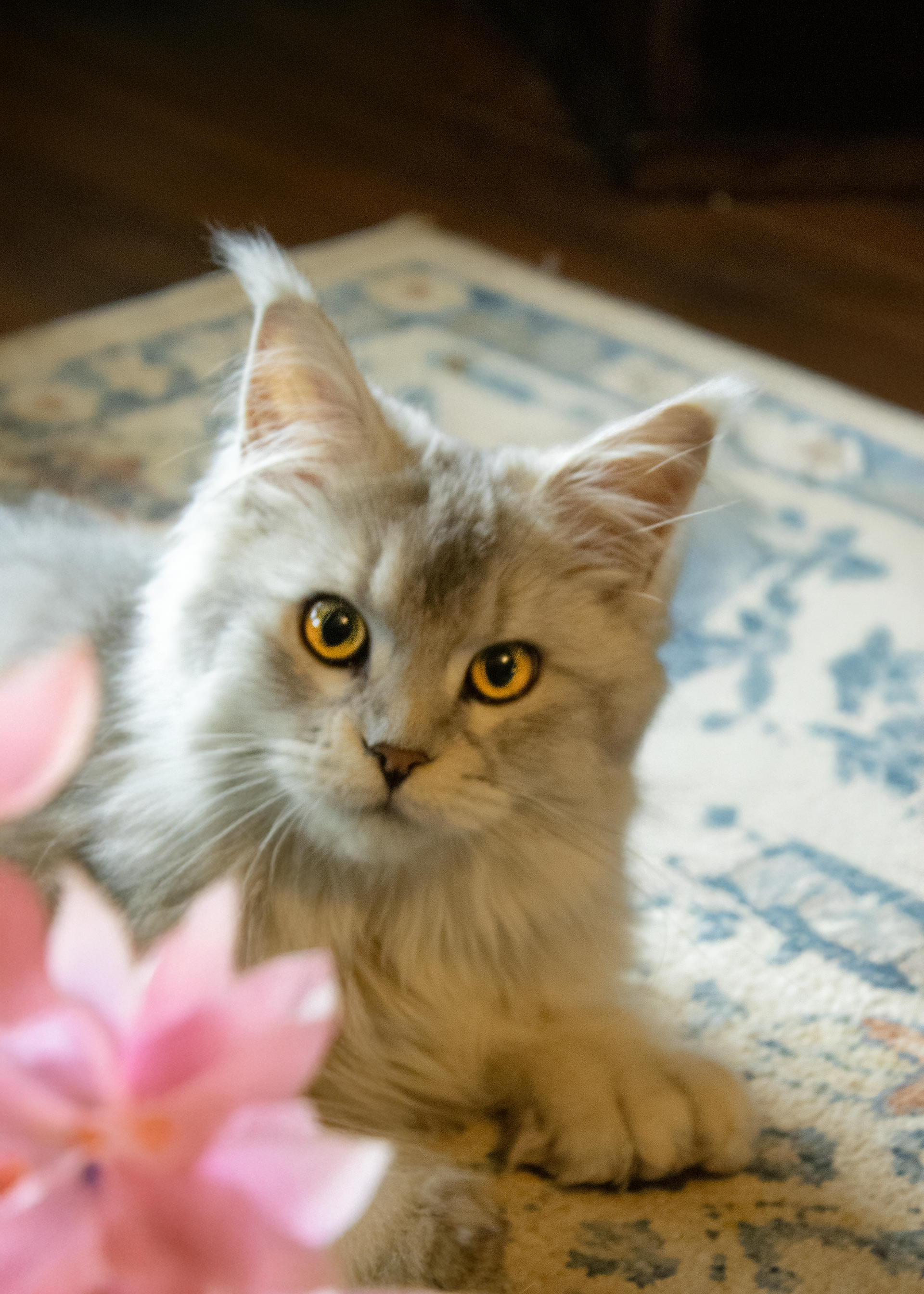 Pepper is a sweet, polydactyl(which mean she has SIX beans on every paw!) Maine Coon. I get the honor of following her growth and documenting it for her fur mom.